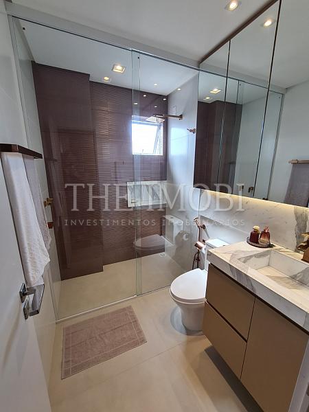 O imóvel conta com ambientes integrados e climatizados, área de serviço funcional, cozinha e banheiros com armários planejados, lavabo e excelente posição solar – com o sol da manhã trazendo luminosidade natural.