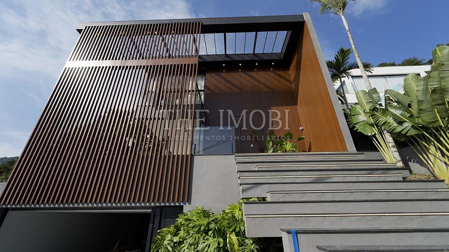 • Fachada imponente com linhas modernas e acabamentos em concreto e brises amadeirados