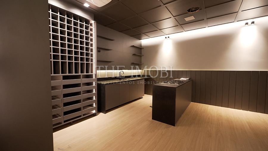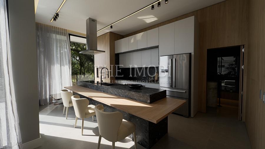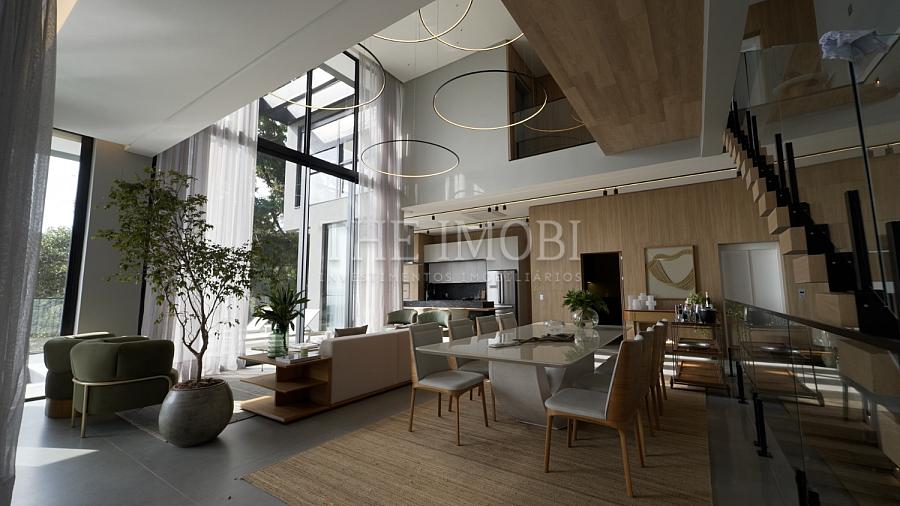 • Living com pé direito duplo, mezanino, estar íntimo com lareira e sala de jantar com adega